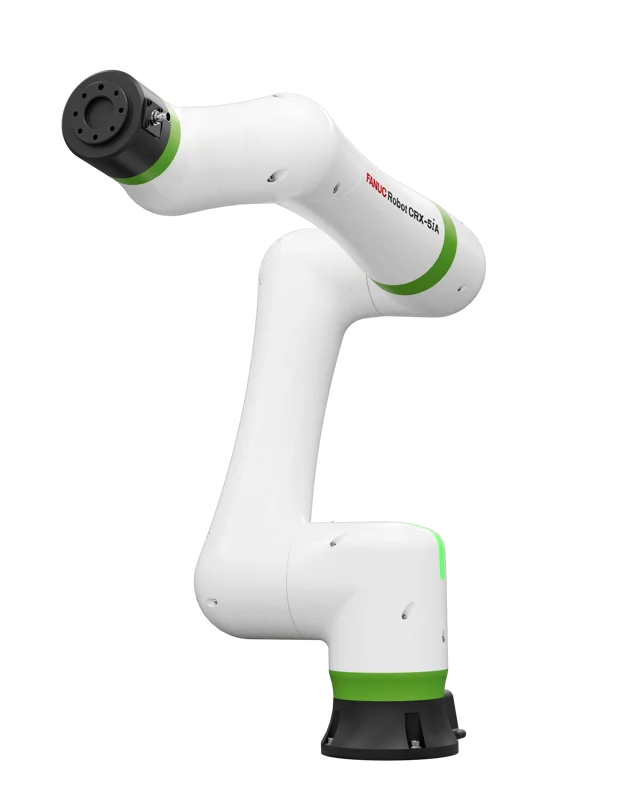 FANUC CRX-5iA Collaborative Robot with 5 kg payload and ~994 mm reach, ideal for light pick-and-place, assembly, and inspection tasks; compact, IP67-rated, and easy to program via drag-and-drop tablet interface.