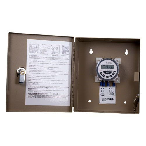 This 7-day programmable time clock can be used to control up to 8 on/off events per day from a selection of 15 daily program combinations. The iO-TC is powered by 24VAC and has a self-charging lithium battery to maintain the real-time clock schedules in the event of a power failure. The iO-TC comes in a metal enclosure with key lock and conduit knock-outs located on the top, bottom and sides for ease-of-installation. Specifications: Mounting: Metal enclosure with mounting holes Dimensions: 8.25 Height x 7.25 Width x 3.5 Depth Input Voltage: 24VAC Warranty: 1-year