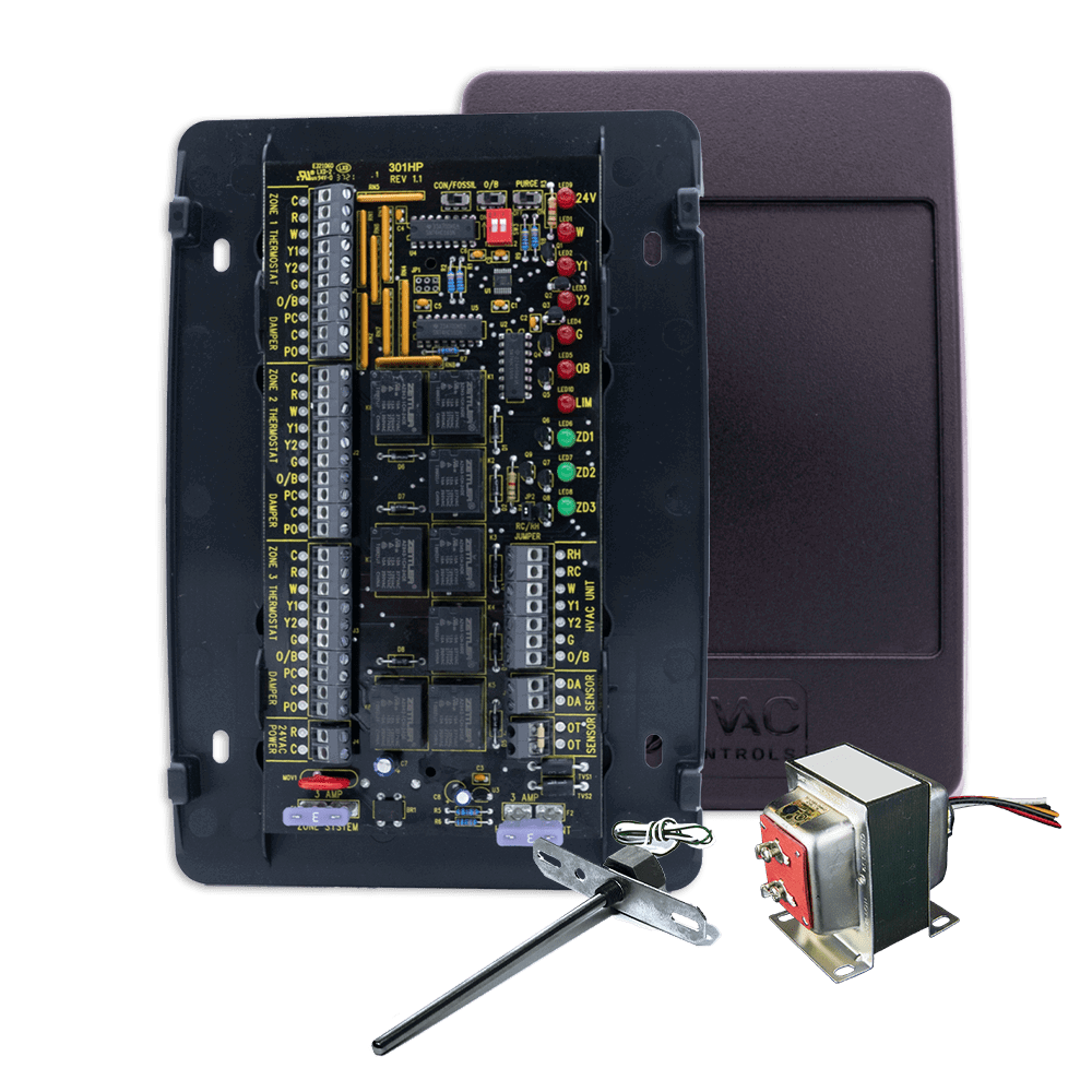 3-Zone Multi-Stage 3H/2C Zone Panel Kit, Static pressure Sensor included, 40VA transformer and Duct temp sensor, Conventional, Heat Pump and Dual Fuel systems, Auto Change over, Balance point, First Call Priority with Time Share, Purge Cycle, Works with 3 wire dampers for ESP functionality, Independent fan control – 10 YEAR WARRANTY