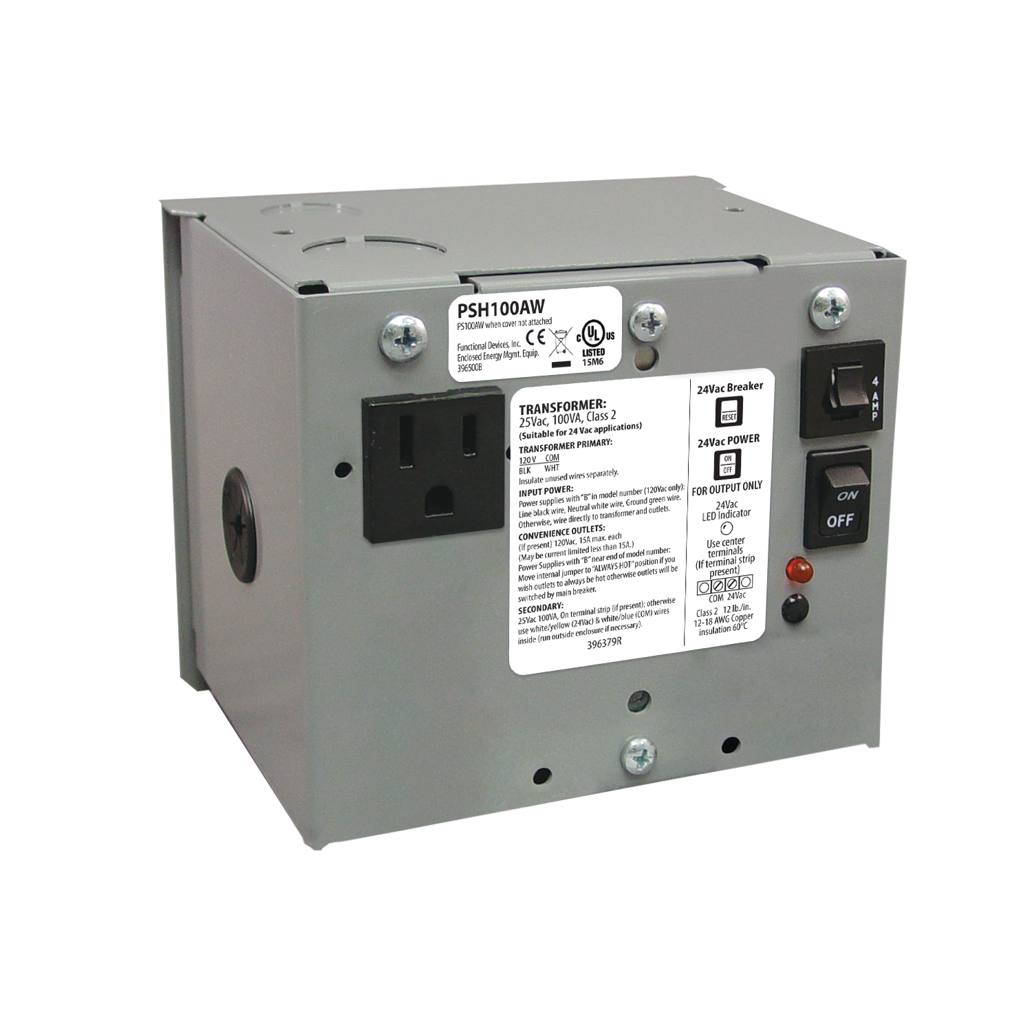 Enclosed Single 100VA 120 to 24Vac UL Class 2 power supply secondary wires