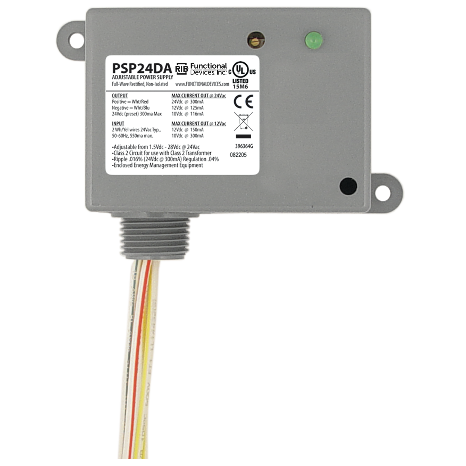 Enclosed general purpose DC power supply 24Vac Input, Output Adjustable from 1.5 – 28Vdc