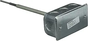 Duct point temperature sensor with a 1K ohm nickel (at 32 degrees Fahrenheit) sensing element. This unit has an 8-inch (20 cm) probe, 2 x 4 electrical box housing and is Siemens compatible.