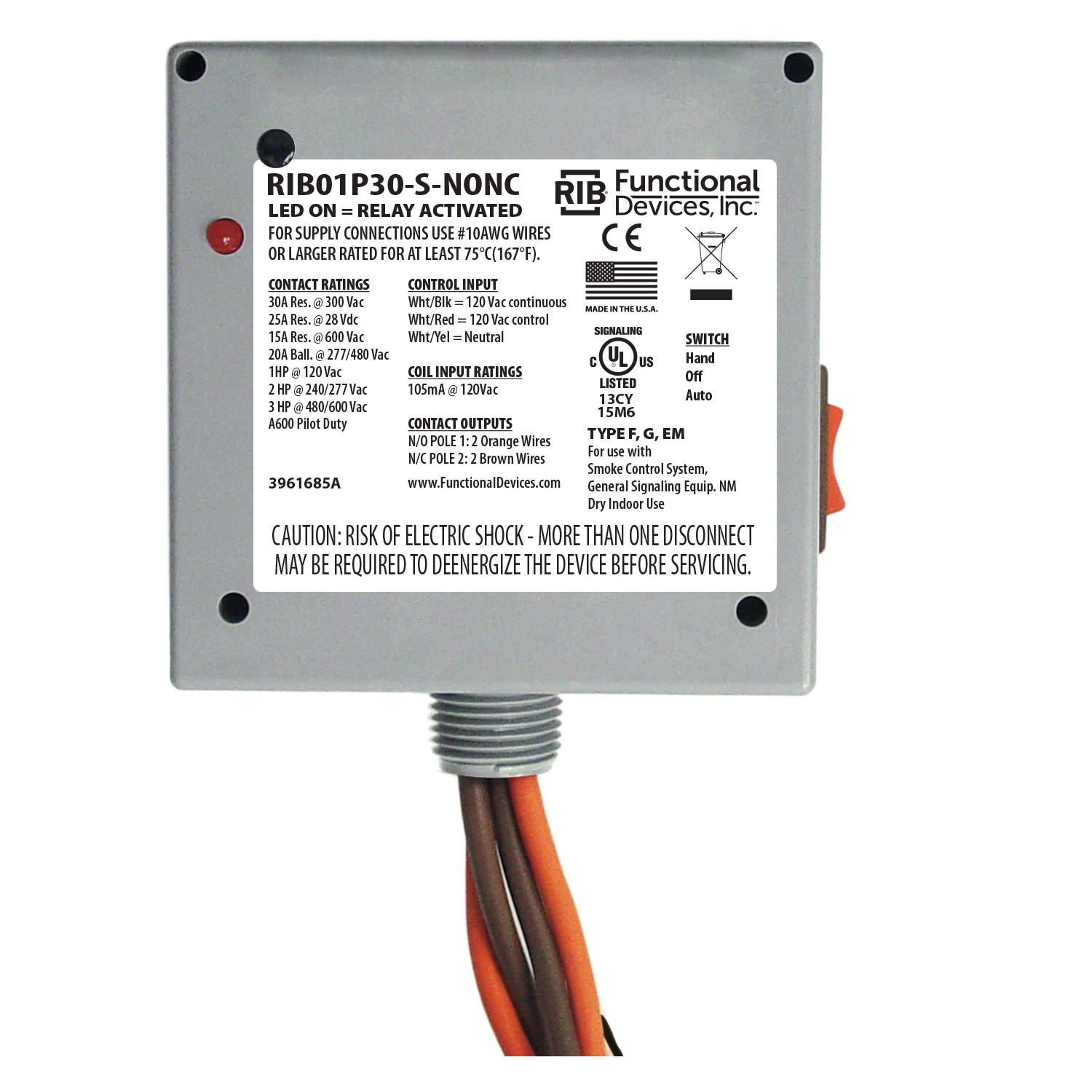 Enclosed Relay 30Amp DPST (1 NO & 1 NC) 120Vac + Coil Side Override