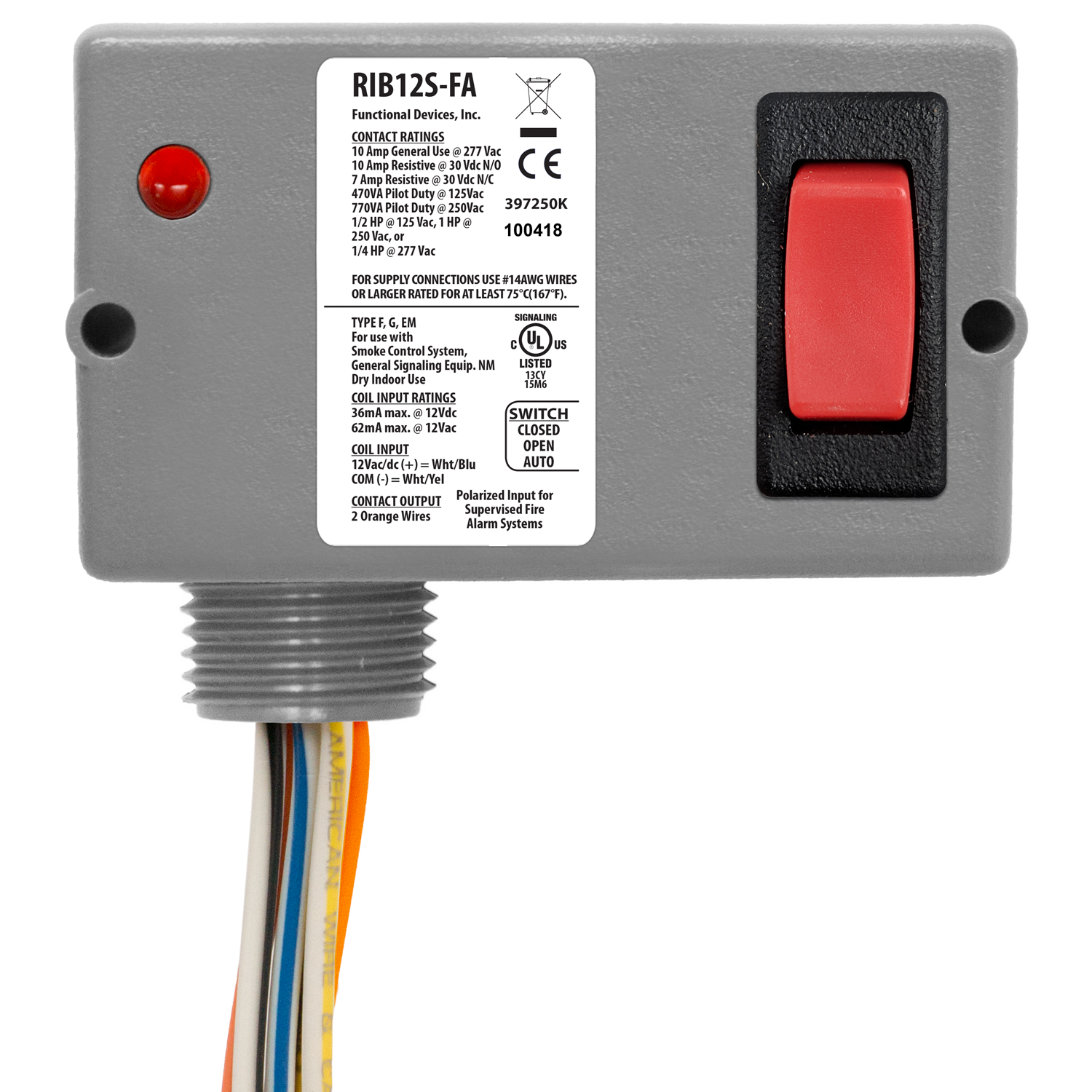 Enclosed Relay 10A SPST 12Vac/dc + Override; Polarized