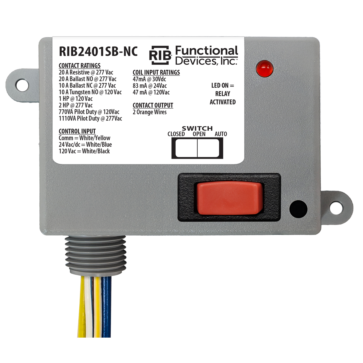 Enclosed Relay 20Amp SPST-NC 24Vac/dc or 120Vac + Override Switch
