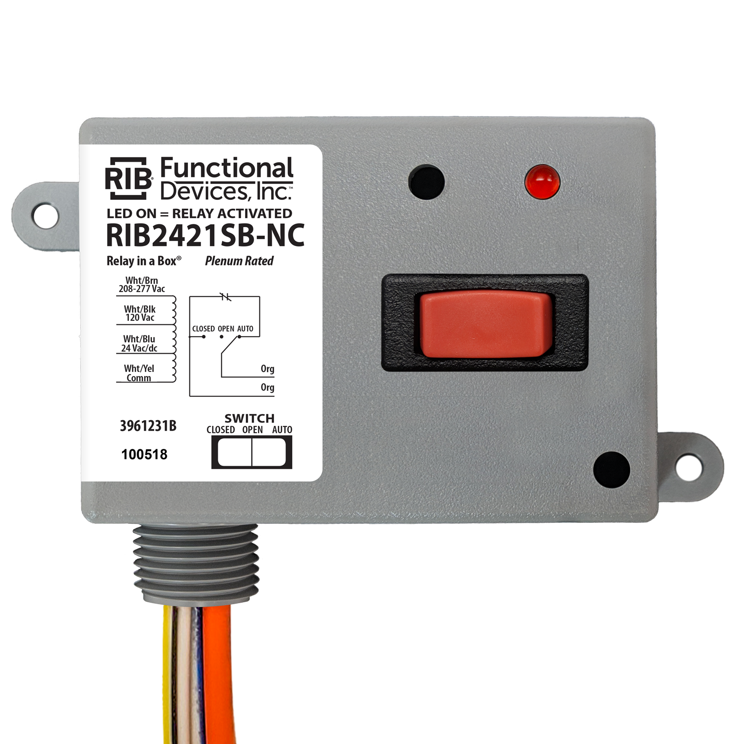 Enclosed Relay 20Amp SPST-NC 24Vac/dc or 120Vac or 208-277Vac + Override