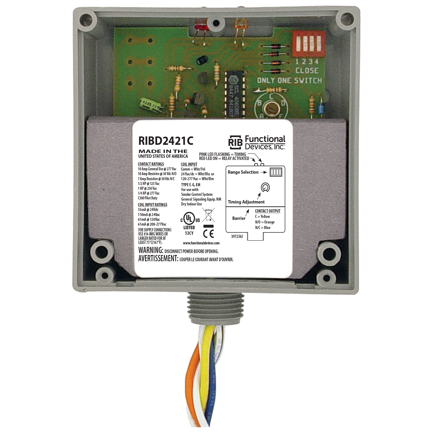 Enclosed Relay 10Amp SPDT 24Vac/dc, 120-277Vac, Time Delay