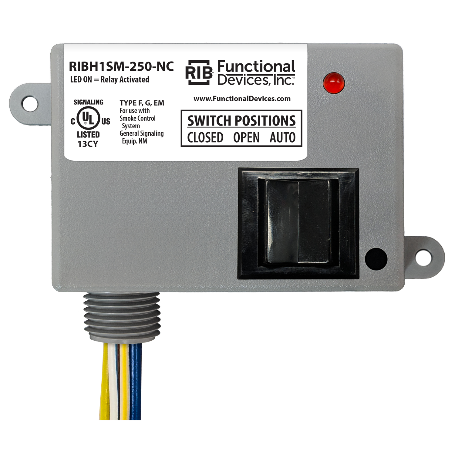 Enclosed Relay 10Amp SPST-NC 10-30Vac/dc or 208-277Vac + Override + Monitor