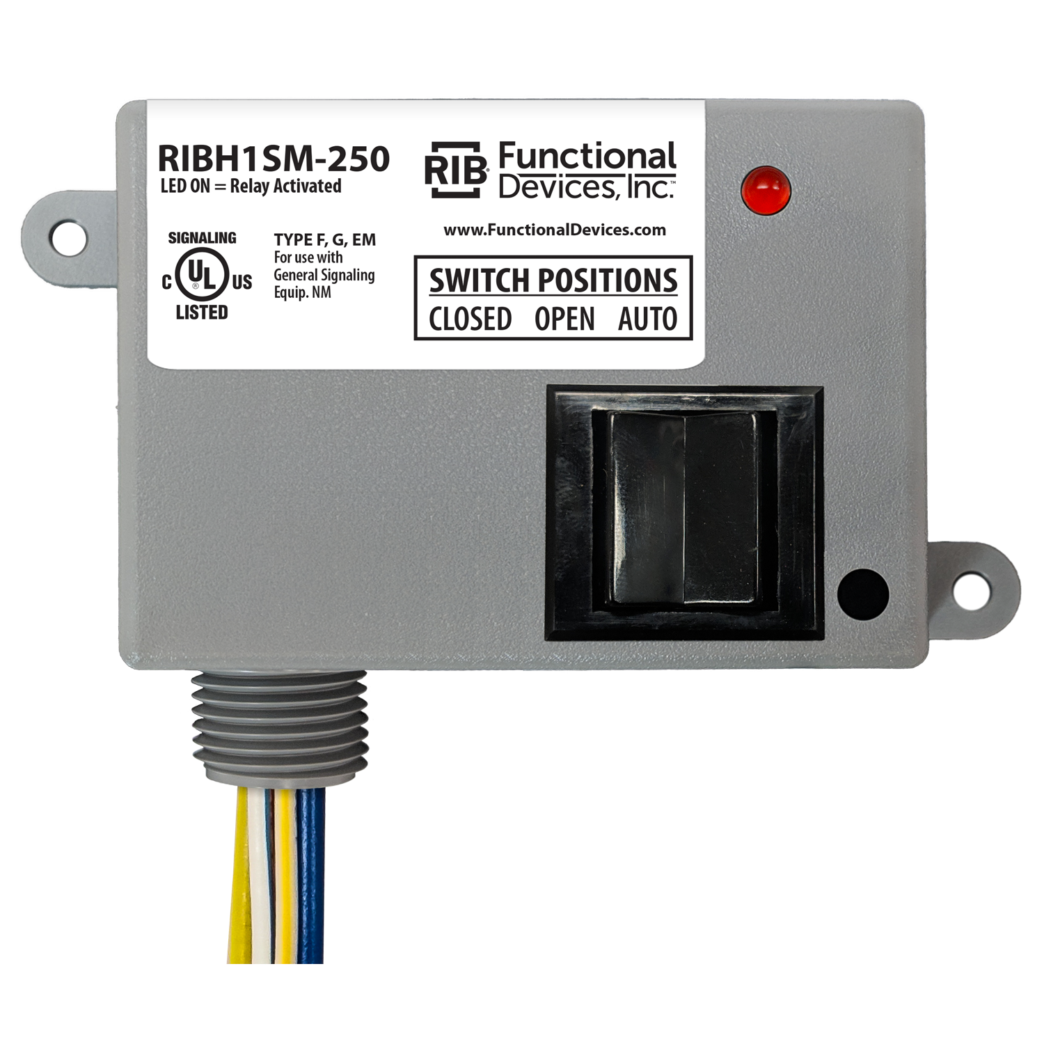 Enclosed Relay 10Amp SPST 10-30Vac/dc or 208-277Vac + Override + Monitor