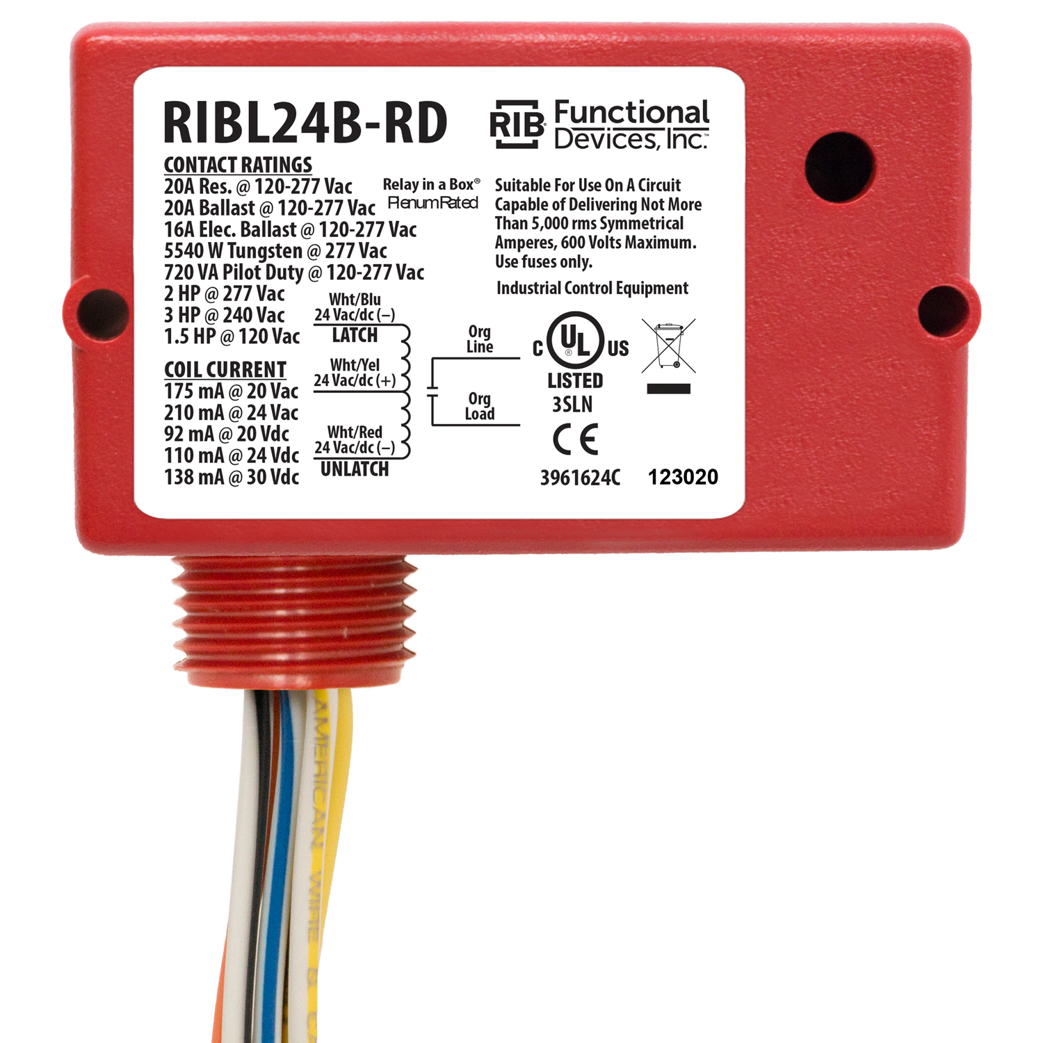 Enclosed Relay 20Amp 24Vac/dc Latching Red Hsg