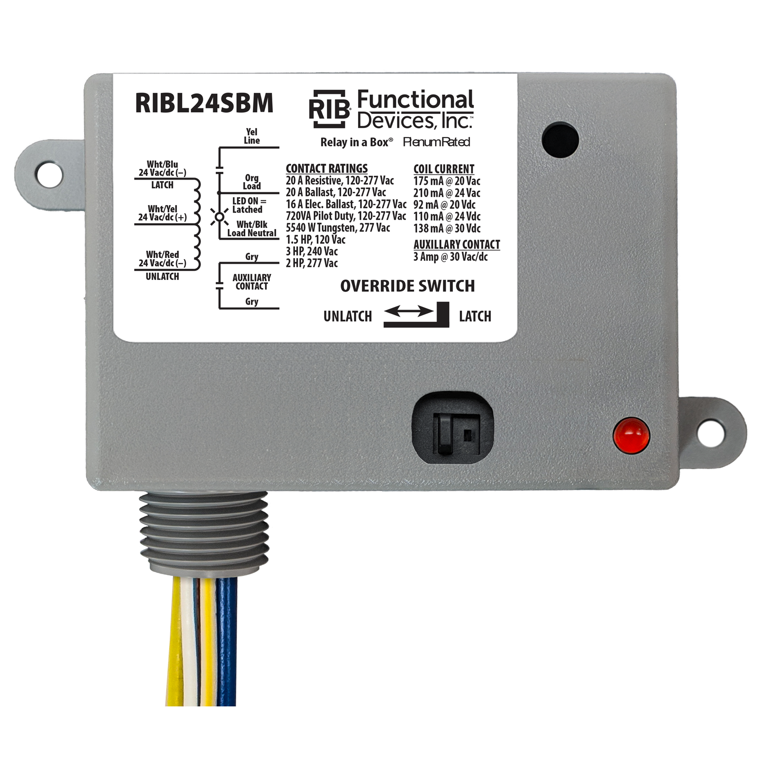 Enclosed Relay Latching 20Amp 24Vac/dc with switch + aux contact
