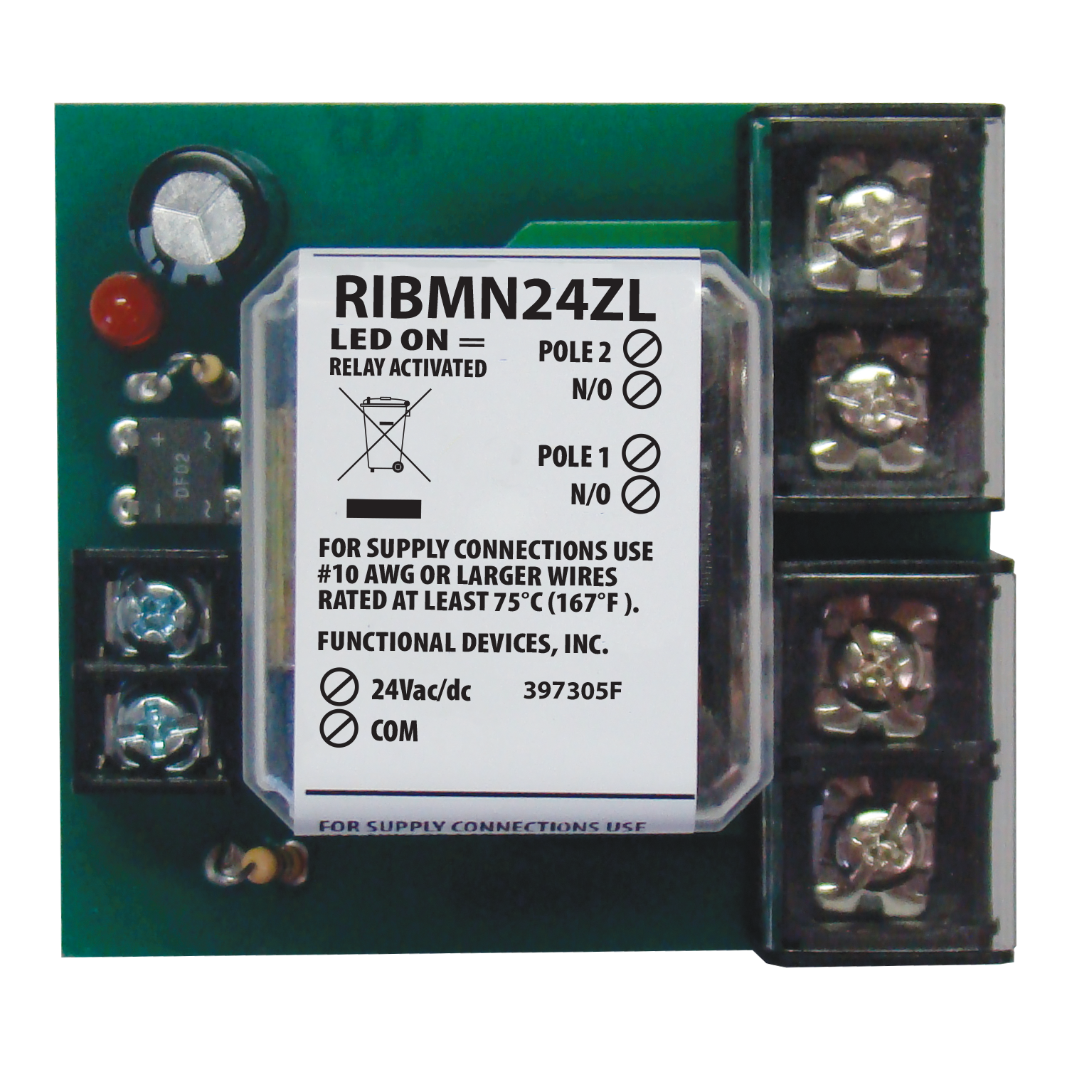 Panel Relay 2.75in 30Amp DPST 24Vac/dc