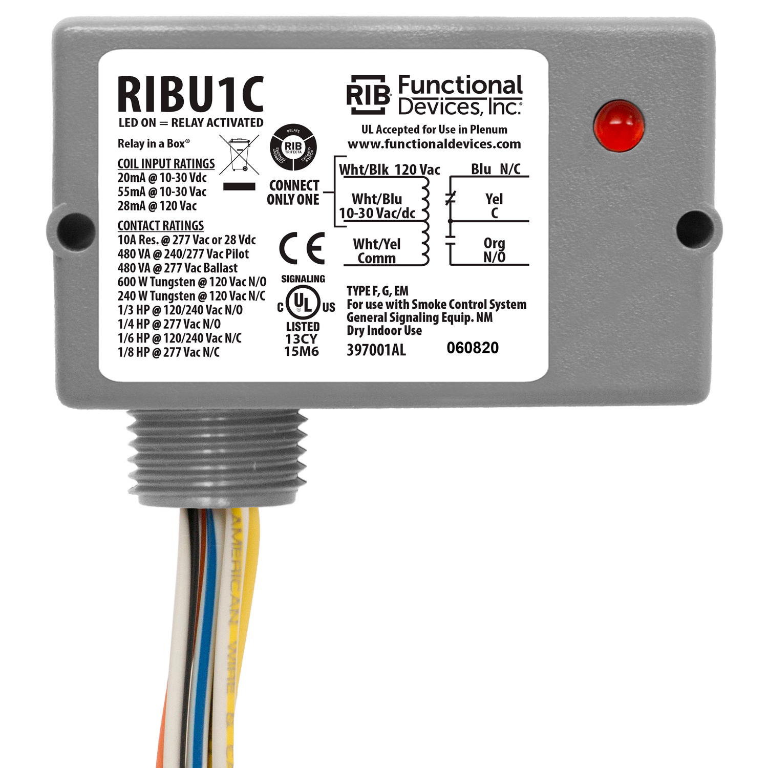 RIBU1C Multi-pack (100 Count) Enclosed Relay 10Amp SPDT 10-30Vac/dc/120Vac