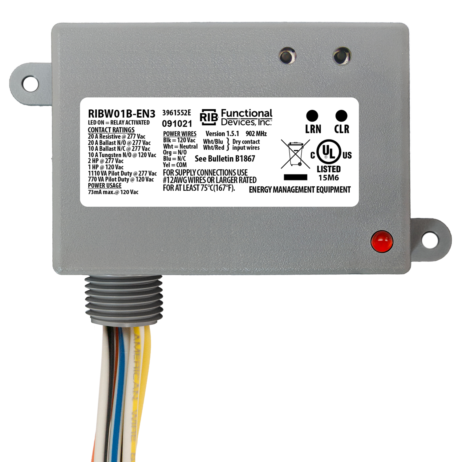 EnOcean 902 Mhz Enclosed Relay 20Amp 120Vac 2-Way Wireless Dry-Contact Input