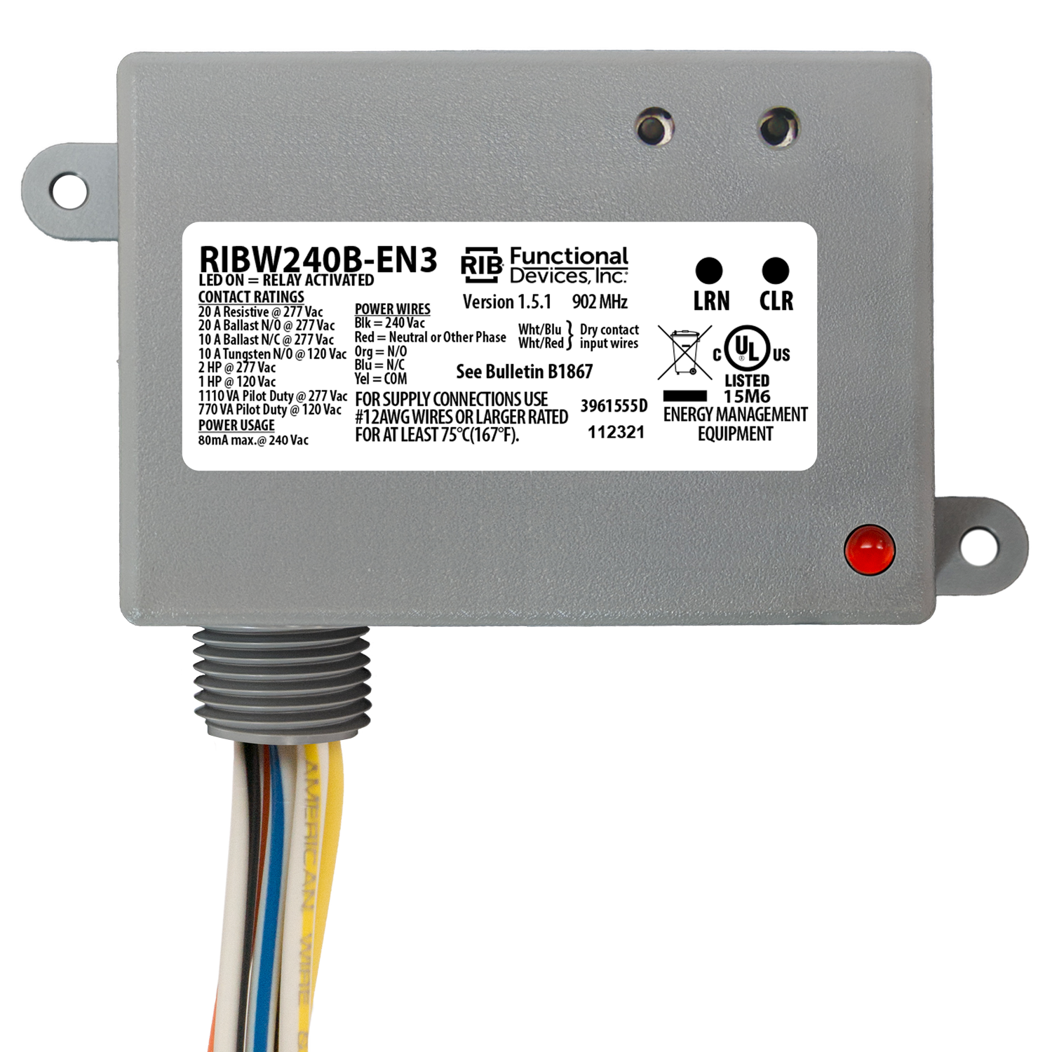 EnOcean 902 Mhz Enclosed Relay 20Amp 240Vac 2-Way Wireless Dry-Contact Input
