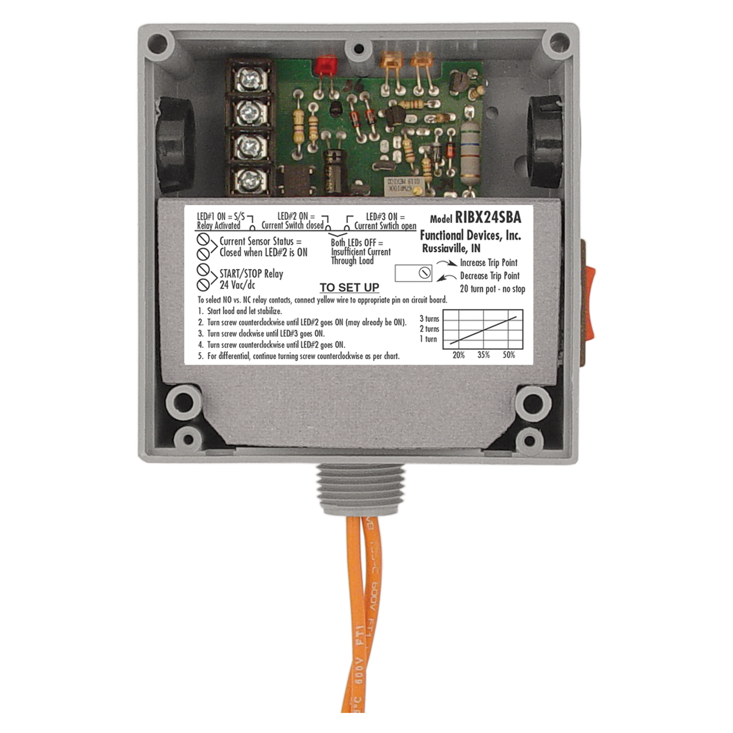 Enclosed Relay 20Amp SPST 24Vac/dc Internal Adjustable AC Sensor with Override switch