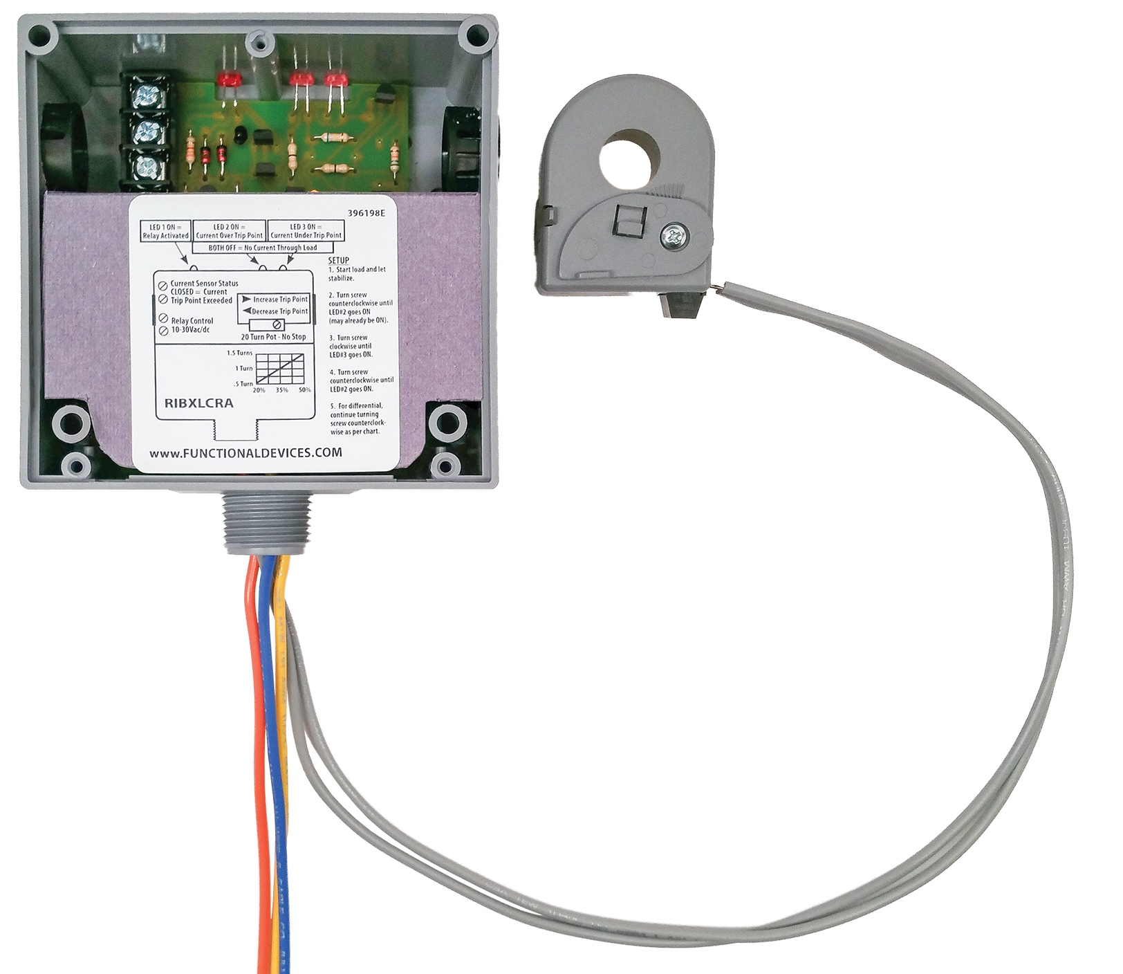Enclosed 10Amp SPDT Relay 10-30Vac/dc + Solid-Core AC Sensor Adjustable