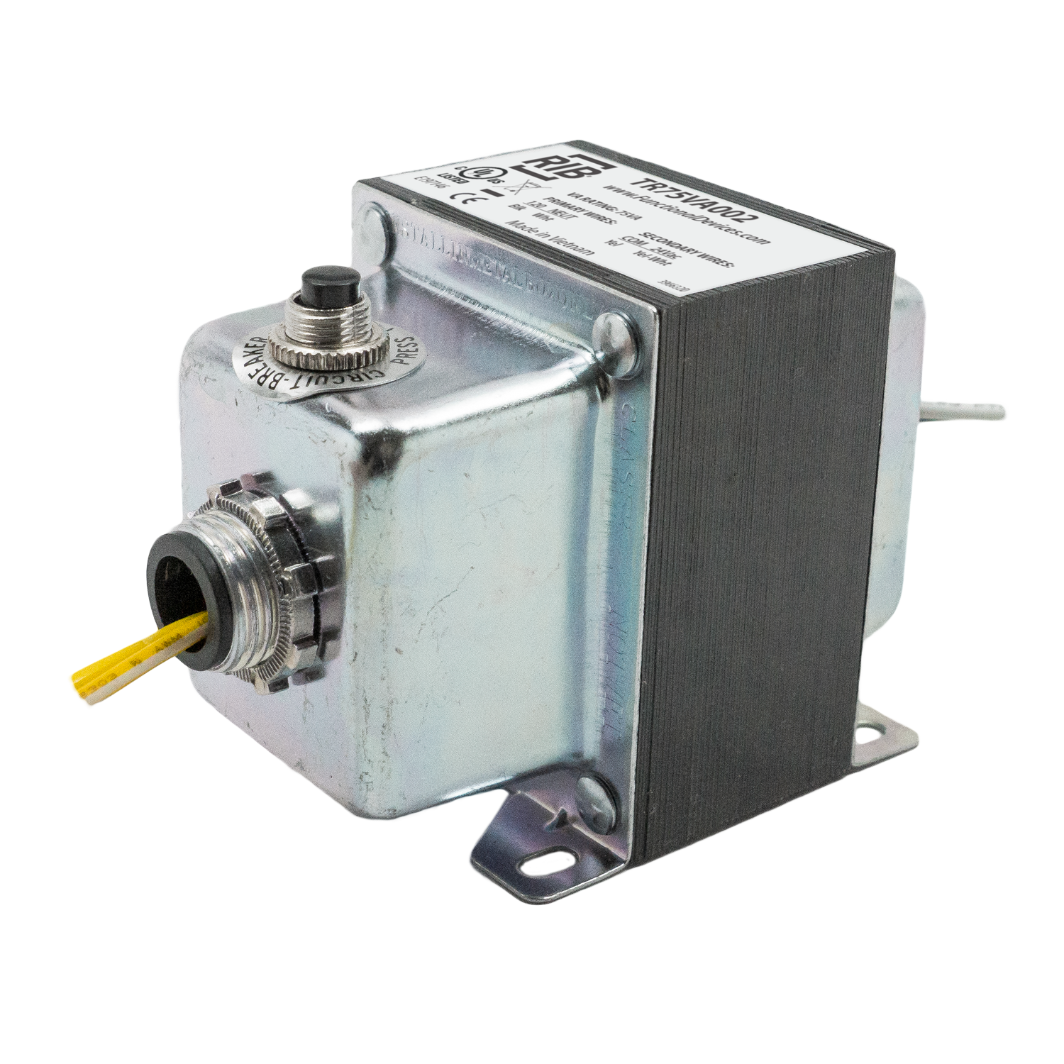 Transformer 75VA, 120-24V, dual hub, Class 2 UL Listed US/Canada, Circ. Bkr.